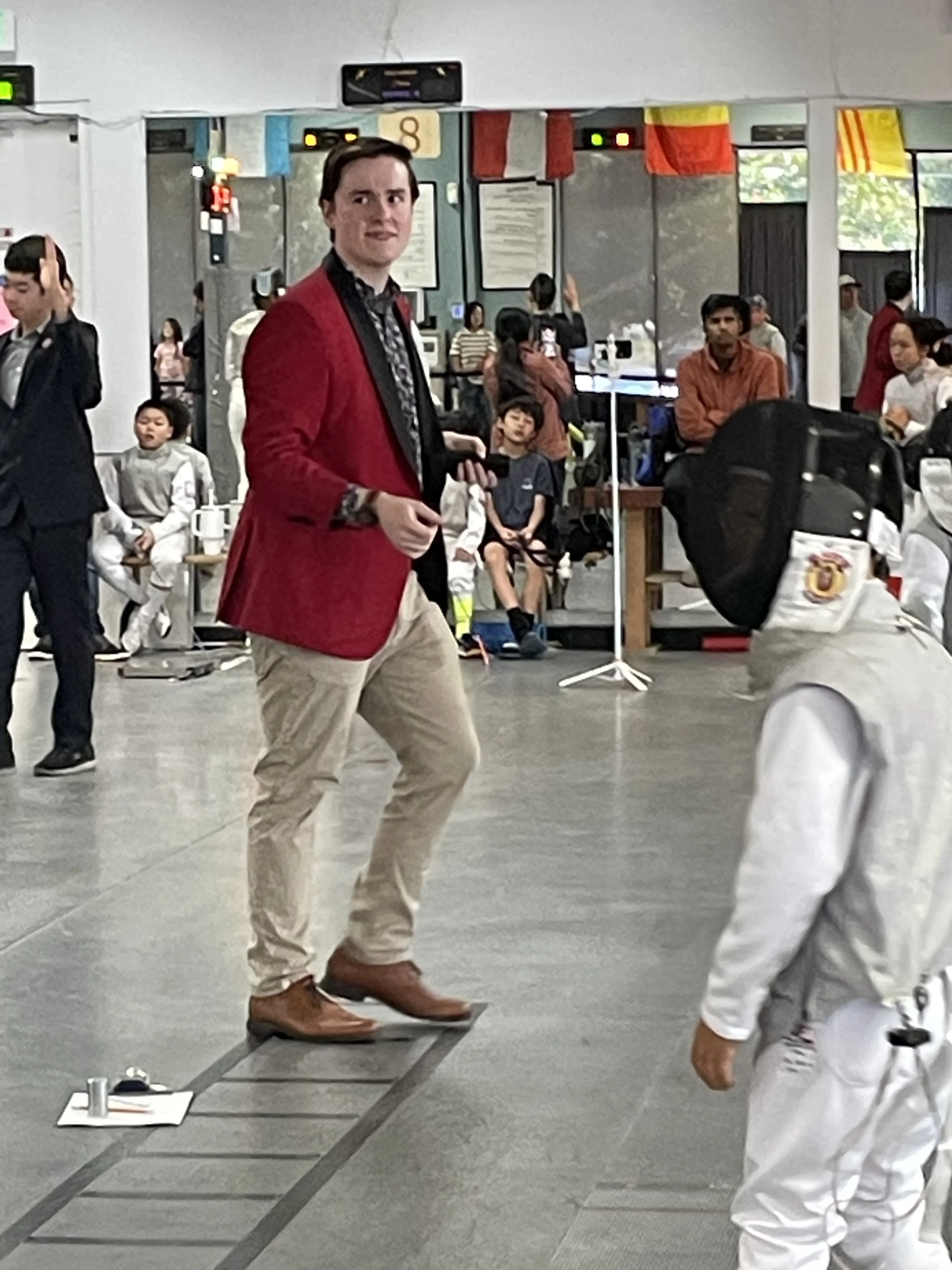 Reed keeps busy with many hobbies outside of the rehearsal room, including competition fencing, where he has achieved national ratings from the US Fencing Association and frequently referees for youth tournaments